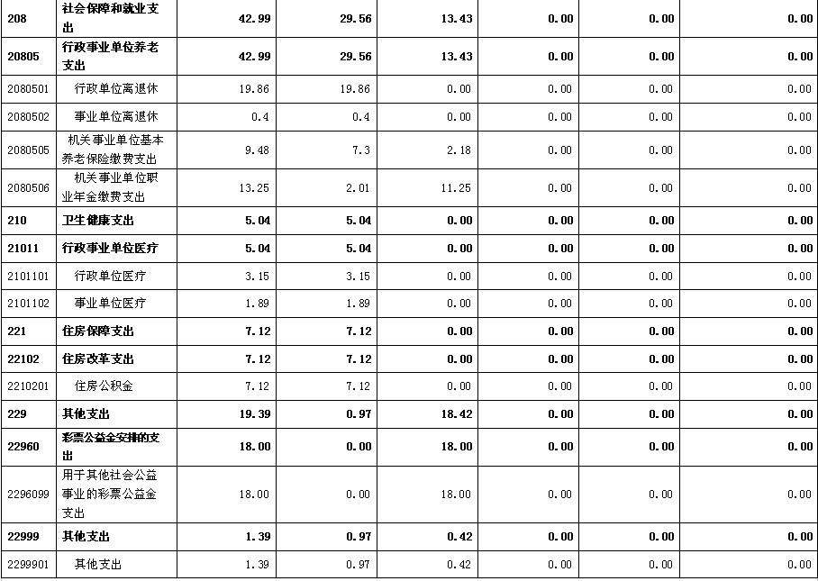 7、社会保障和就业(类)行政事业单位养老支出(款) 行政单位离退休(项)。