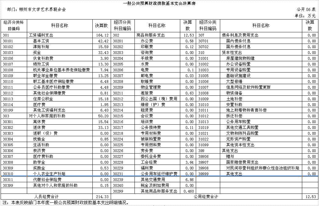 基本支出:2020年度财政拨款基本支出227.82万元,其中:人员经费214.33万元,主要包括:(基本工资、津贴补贴、奖金、社会保障缴费、伙食补助费、绩效工资、其他工资福利支出、离休费、退休费、生活补助、医疗费、奖励金、住房公积金等);公用经费13.49万元,主要包括:(办公费、印刷费、手续费、水费、电费、邮电费、差旅费、维修(护)费、租赁费、会议费、培训费、公务接待费、专用材料费、劳务费、委托业务费、工会经费、福利费、税金及附加费用、其他商品和服务支出、办公设备购置、专用设备购置、大型修缮等).