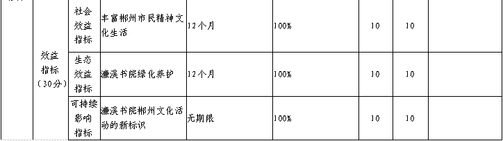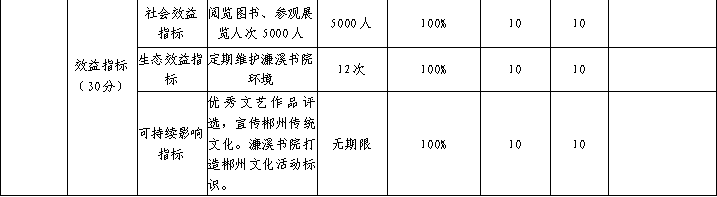 濂溪书院运行维护费绩效目标:发挥书院文化传承、作品展览、教育培训的重要作品,打造郴州城市文化内涵、提升郴州文化品质,文联接管后保持书院的公益性不变,维护好书院周边环境卫生,院内的公厕免费开放。
