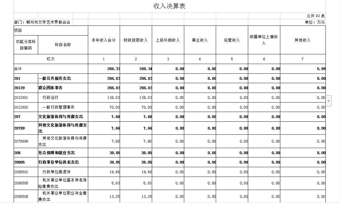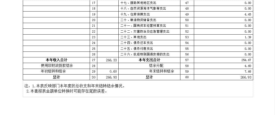 2020年度收、支总计266.93万元。与上年相比,减少112.6万元,减少29.67%,主要是因为2020年因为疫情减少开展文艺活动。