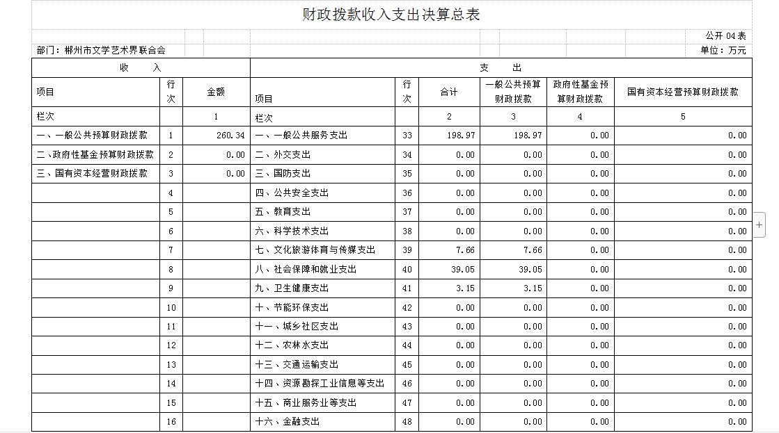 业务工作经费70万元,其中财政拨款70万元,主要用于出版出版《郴州文艺》6期,出版《郴州文艺作品年选》文学卷、艺术卷,举办送文化下乡4次,并开展了书法、美术、摄影展览、义写春联等惠民活动。