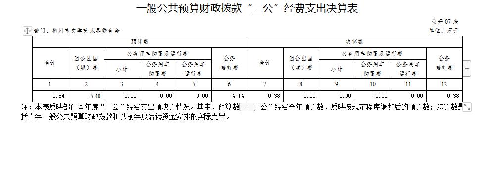 2、公务接待费支出决算为0.38万元,全年共接待来访团组7个、来宾38人次,主要是省文联、县市区文联来调研、汇报工作发生的接待支出。