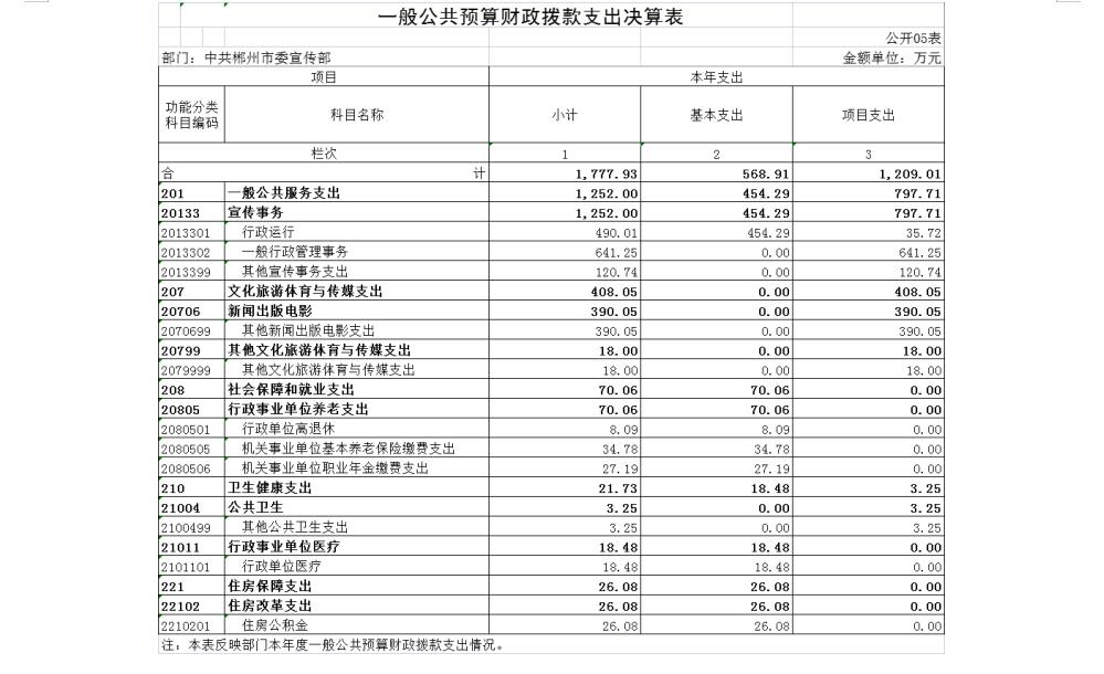 1、一般公共服务支出(类)宣传事务(款)行政运行(项)。