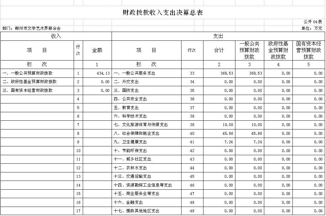 四、财政拨款收入支出决算总表