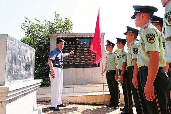 9月1日,武警郴州支队嘉禾中队组织官兵来到当地红军墓开展祭奠活动,深切缅怀革命烈士,重温红色故事和军人誓词。 (全媒体记者 李科 通讯员 牟鑫斌 摄)