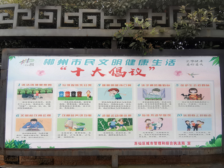 我市通过组织开展“市民文明健康生活”大讨论活动、“文明健康,有你有我”公益广告宣传行动、“防疫有我、爱卫同行”爱国卫生月活动,归纳提炼《郴州市文明健康生活“十大倡议”》,编印《郴州市市民文明手册》《这些行为容易触碰法律法规——常见禁止行为法律法规选编》等,向市民普及城市管理、公共交通、公共安全、公共卫生、公共秩序等法律法规和 、文明规范、文明礼仪、生活服务等方面知识,为其提供讲文明话、办文明事、做文明人的准则,使其养成文明健康、绿色环保的生活方式。