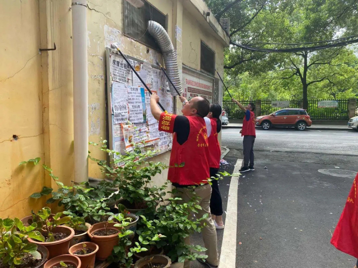 志愿者正在开展爱国卫生月活动