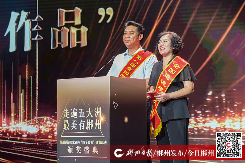 9月14日晚,“走遍五大洲·最美有郴州”——郴州旅游形象宣传“四个最美”征集活动颁奖晚会现场,八位“身边好人”揭晓“四个最美”获奖名单,将晚会气氛推向高潮。