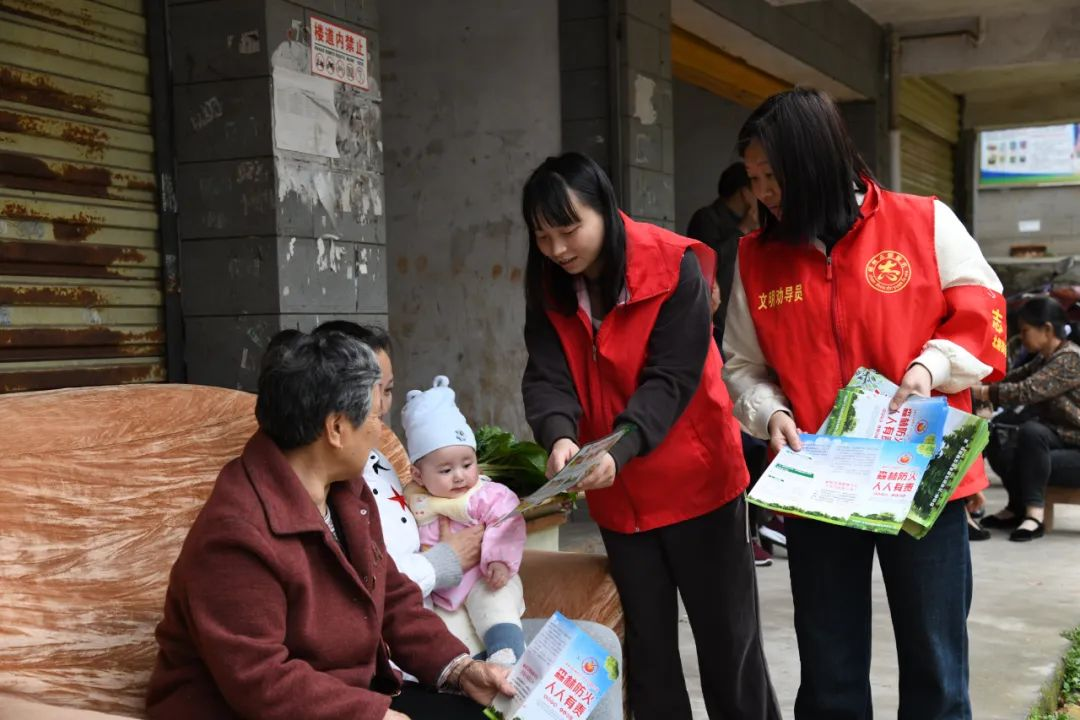 在桂阳县飞仙圩场,舂陵江镇工作人员通过摆摊设点、音频播放等方式,向过往群众发放相关资料、宣传文明祭祀知识。