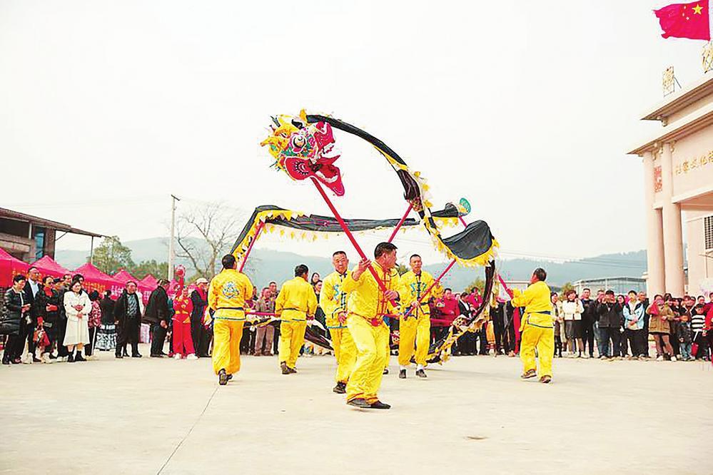 桂阳县举办首届传统文化节,现场表演了舞龙、歌舞、剪纸等文艺节目,同时开展了抖糍粑、磨豆腐等民俗体验活动,欢庆元旦佳节。(欧阳常海 摄)