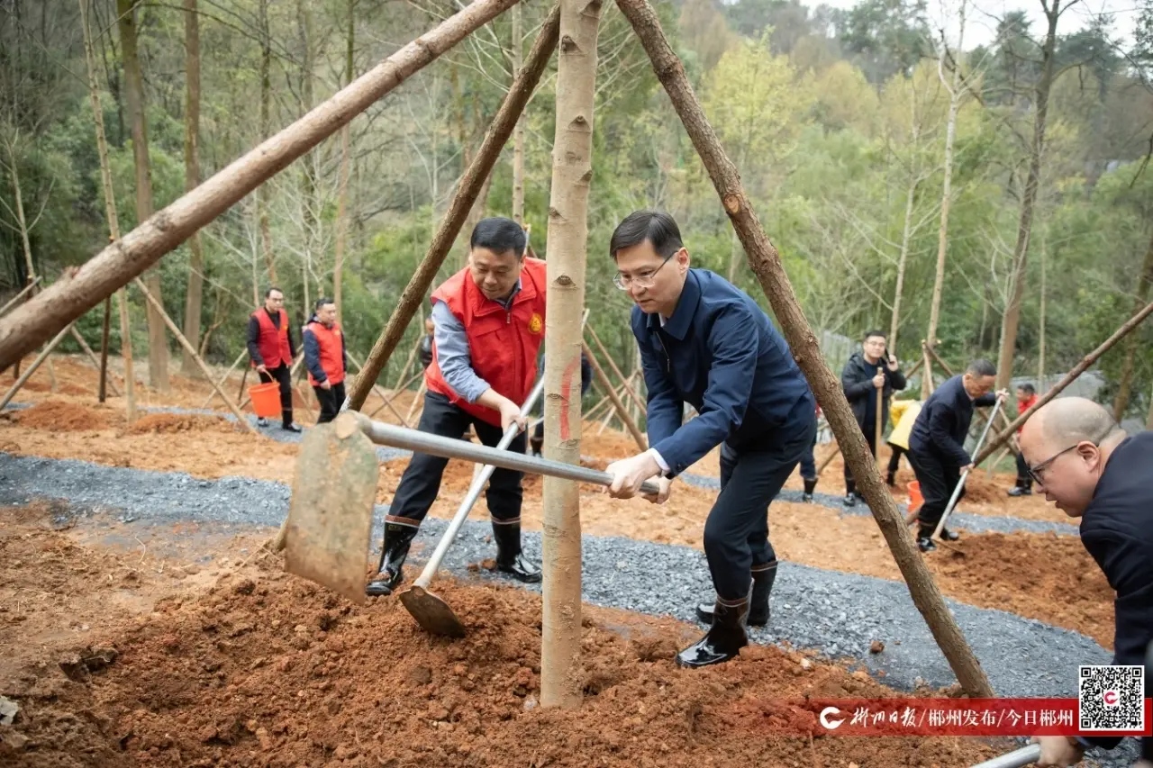 迎春风,植绿意。3月13日上午,郴州市干部群众、志愿者及社会各界代表在苏仙岭桃花居共同开展义务植树活动。郴州市委副书记、市长阚保勇等市委、市人大常委会、市政府、市政协、郴州军分区在郴市级领导参加义务植树,为郴州再添新绿,共建绿色家园。
