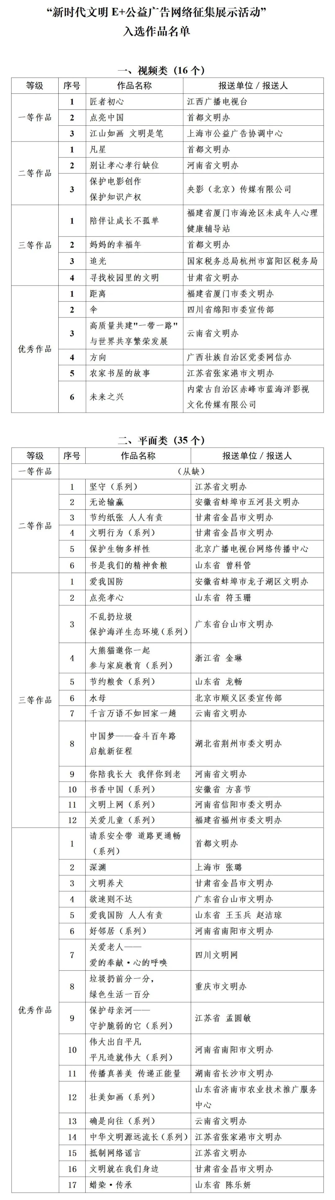 “新时代文明E+公益广告网络征集展示活动”入选作品公布