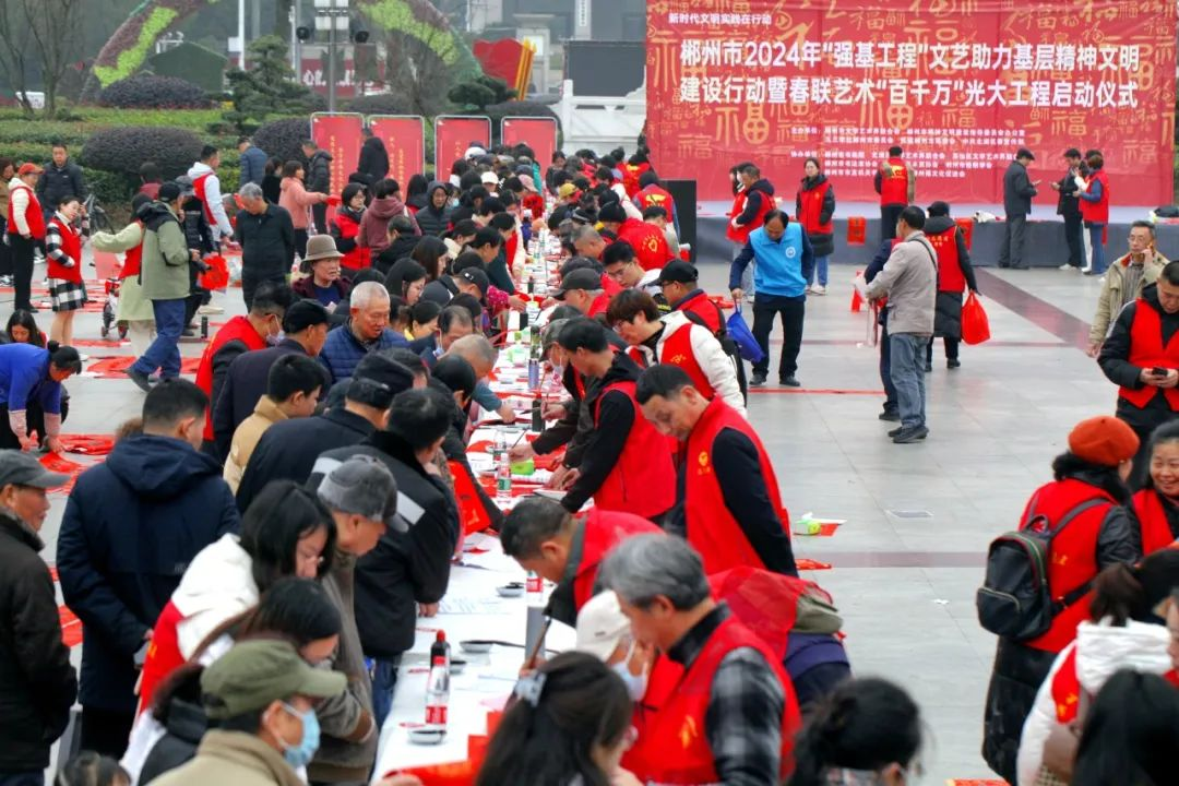 2024年1月18日,郴州市2024年“强基工程”文艺助力基层精神文明建设行动暨春联艺术“百千万”光大工程启动仪式举行