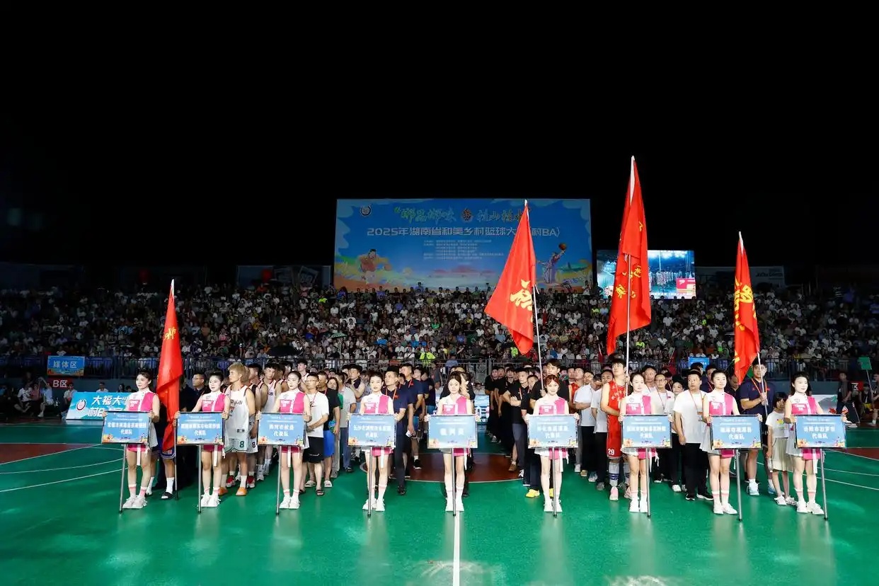 7月12日晚,“郴品郴味・桂山桂水”2025年湖南省和美乡村篮球大赛(村BA)在桂阳县开幕,吸引了来自全省14个市州的16支乡村篮球队参赛,未来8天内将上演44场精彩对决,为观众呈现一场充满激情与活力的篮球盛宴。