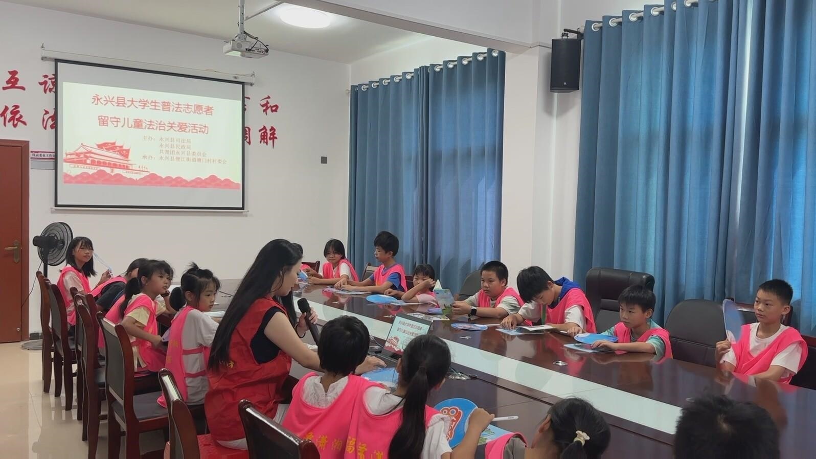 为增强留守儿童法治意识,营造安全成长环境,近日,永兴县司法局联合县民政局、团县委在“福泽潇湘・银都护苗”关爱留守儿童项目便江街道塘门村站点开展法治宣传活动。