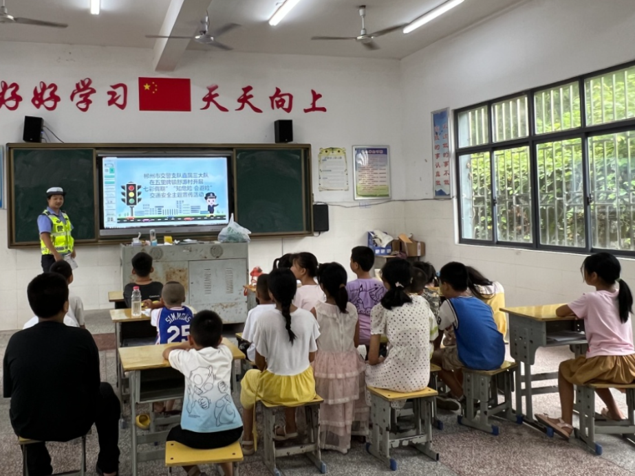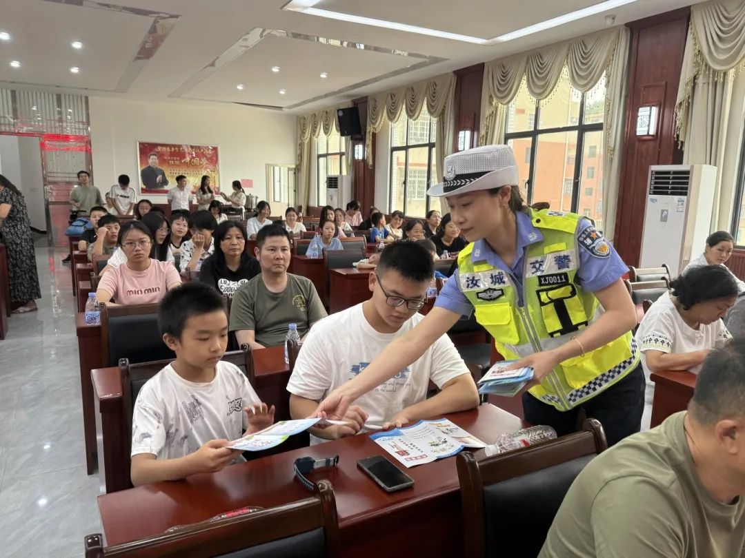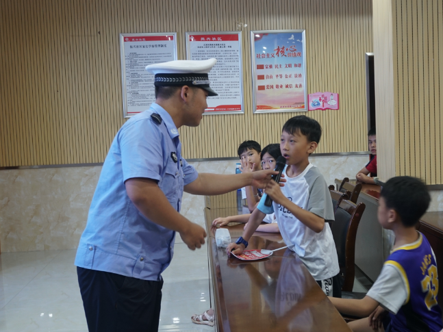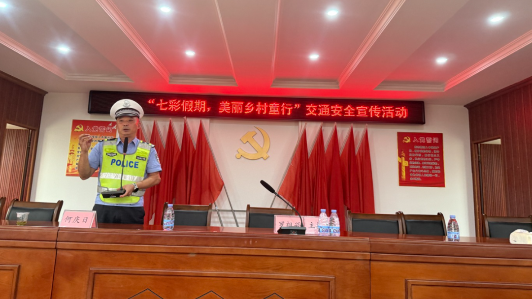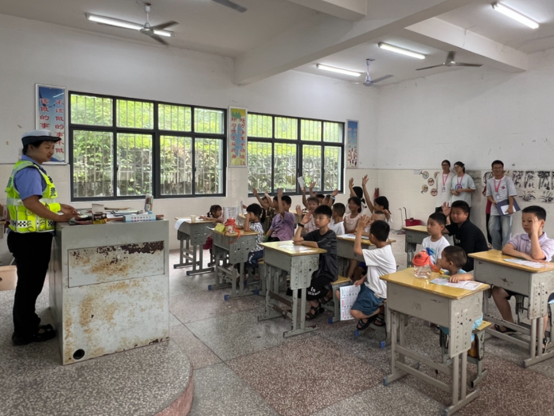 汝城大队联合县关工委、县妇联、团县委、县卫健局、卢阳镇、县仁和社工站等多部门,把 “七彩假期 美丽乡村童行” 的安全课堂搬进了卢阳镇云善村。多部门联动的力量让安全知识传递得更全面,从道路风险防范到应急防护常识,志愿者和民警们用适合中小学生的方式耐心讲解,进一步筑牢了孩子们的暑期交通安全防线。