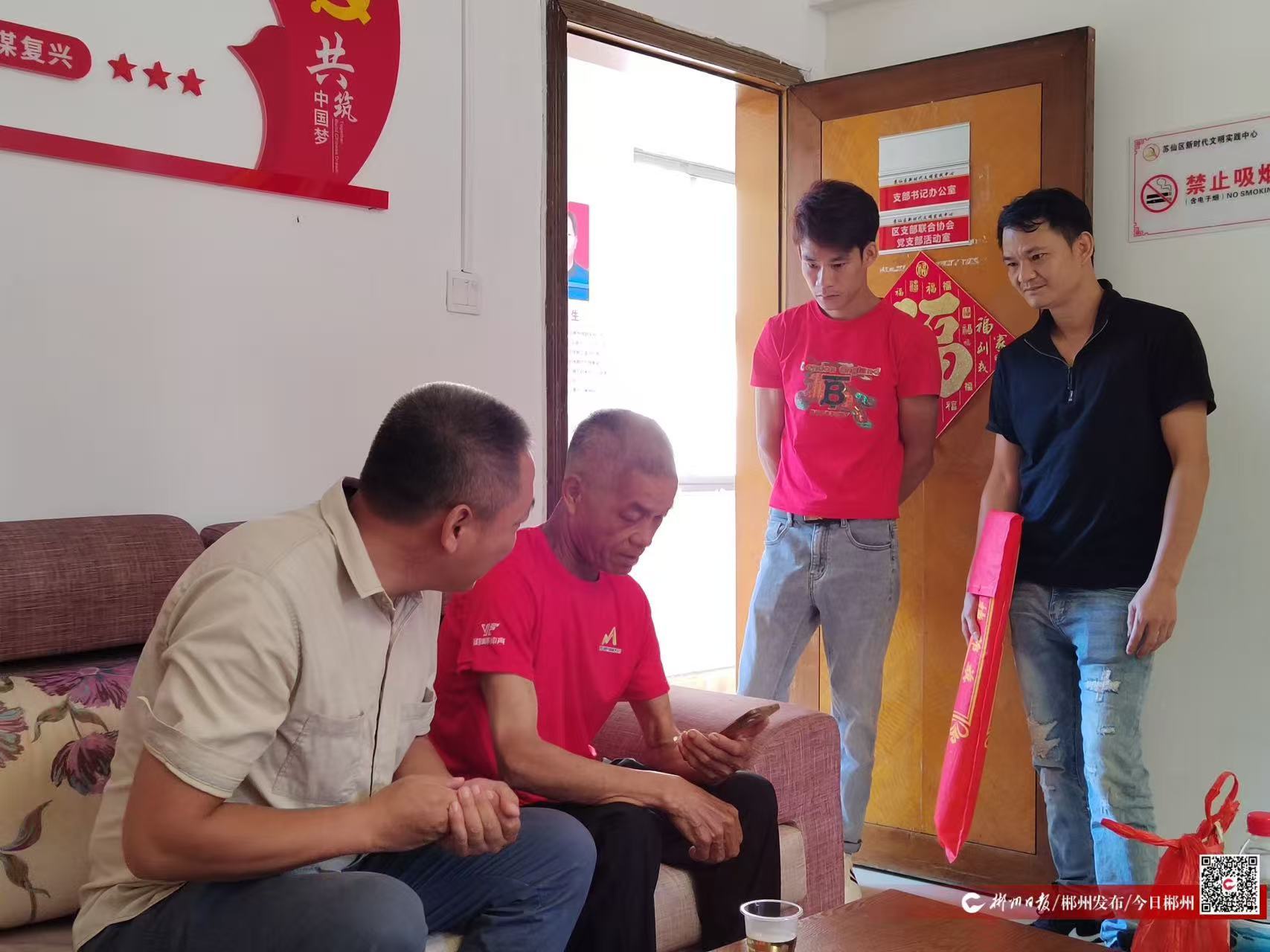 在志愿者的帮助下,我终于见到了亲人,感谢你们!”10月9日,对于罗亚金和他的家人而言,是期盼了二十多年终于梦圆的一天。在亲人的陪同下,他将一面饱含深情的锦旗送到了郴州市苏仙区志愿者联合会志愿者黄军朵的手中,感谢他帮助自己结束了长达二十五年的漂泊,重返阔别已久的家园。
