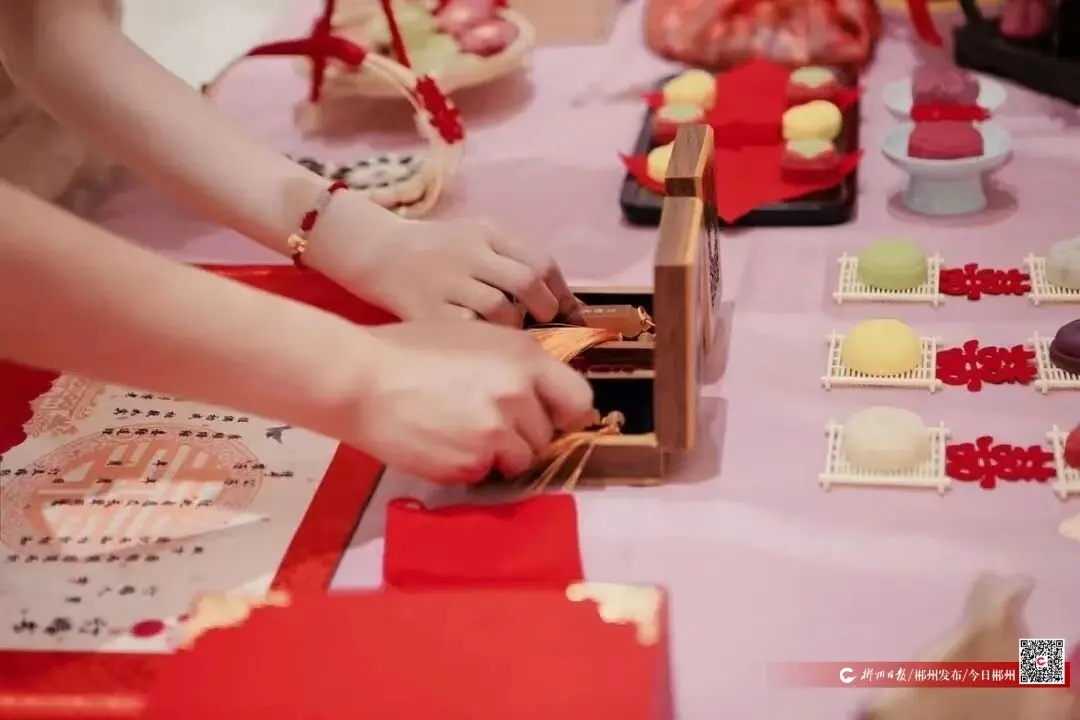 汝城是中国地名文化遗产“千年古县”,有“理学古镇”之称,此地祠堂林立。南宋以来,当地人建濂溪书院以祀周敦颐,朱熹手迹“忠孝廉节”亦随理学南传,亦被摹刻于众多祠堂。朱氏总祠前临寿江,青砖黛瓦映水成景,成为汝城祠堂文化的鲜活地标。如今,古祠再奏新韵,仪式提炼“赞礼者入场—执礼者暖堂—执手礼—三揖三让礼—却扇礼—新人跪坐—婚书”等12个流程,整个过程庄重而简约,不设豪华车队,不收取高价彩礼,摒弃了那些不必要的奢华与攀比,唯独留下了古韵与真挚的承诺,让婚姻真正回归到了“爱与责任”的本质,展现出了婚俗改革的深刻内涵和独特魅力。