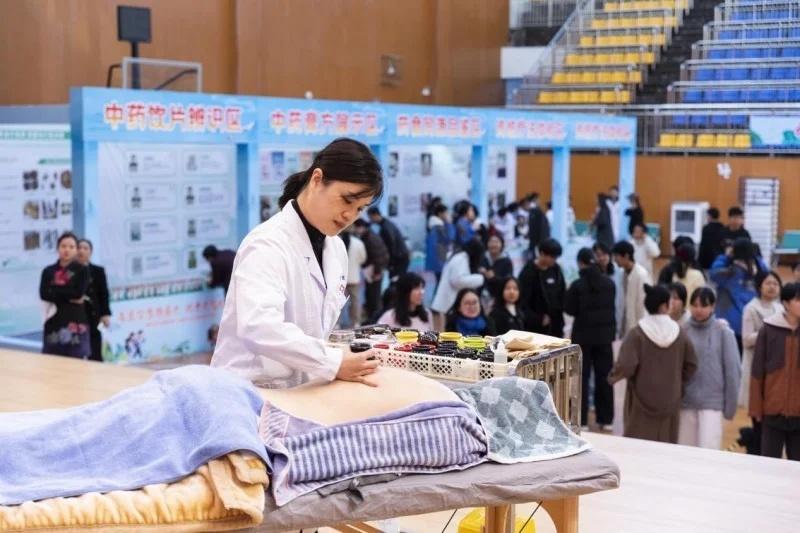 刮痧、推拿、火龙罐齐聚一堂,学子们排起长队踊跃体验,直呼 “过瘾”!这些看似古老的技艺,在现场焕发出新鲜生命力,让大家直观感受中医疗法的奇妙。
