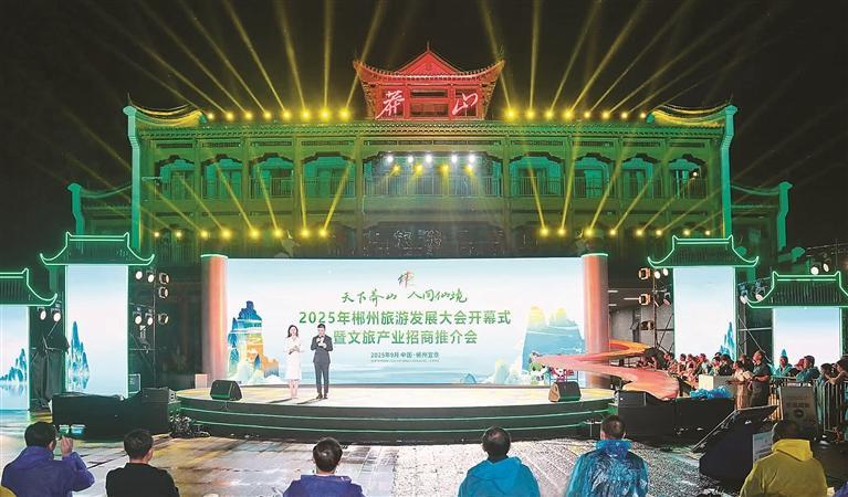 9月25日晚,2025年郴州旅游发展大会开幕式暨文旅产业招商推介会现场。(全媒体记者 陈哲君 摄)