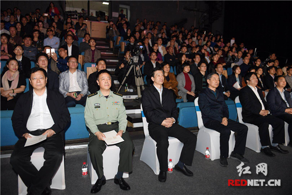 湖南省委常委、省委宣传部部长蔡振红(前排左三),省政协副主席戴道晋(前排左四)等出席仪式。图片来源:红网