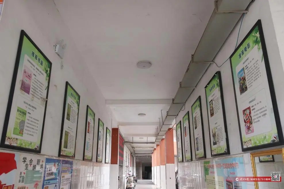 翻新图书室,装修读书吧,新建阅读长廊、朗读亭,多渠道募集图书资源,在教学楼走廊布置名人名言、励志格言、书籍电影推荐展板,为“书香校园”建设提供有力保障,营造浓厚氛围。