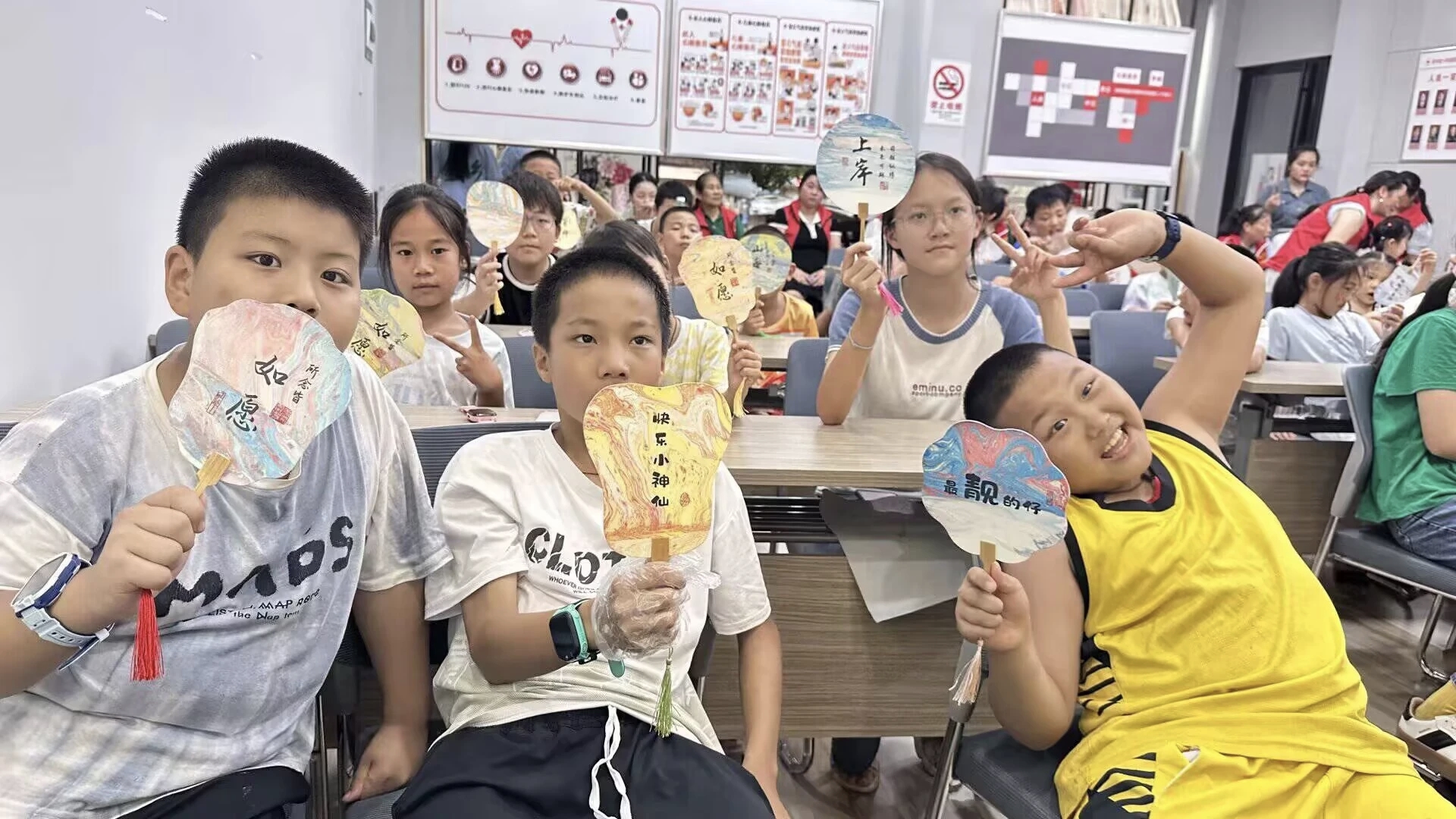 活动期间,新时代文明实践中心内活力满满。6天里,孩子们在大学生志愿者的全程陪伴与指导下,沉浸式体验了“缝缝乐”创意手工DIY、漆扇制作、杯垫设计、亚克力手机串珠等丰富课程。“缝缝乐”课堂上,孩子们穿针引线,认真缝制出造型可爱的小挂件,指尖流转间感受手工缝制的乐趣;漆扇制作课上,志愿者耐心讲解配色与绘画技巧,孩子们提笔勾勒,一把把独具个性的漆扇渐显雏形;杯垫制作环节中,大家发挥想象,用彩绳、木料拼贴出充满创意的图案;亚克力手机串珠课上,五颜六色的珠子在孩子们手中组合成别致的挂饰,成就感溢于言表。