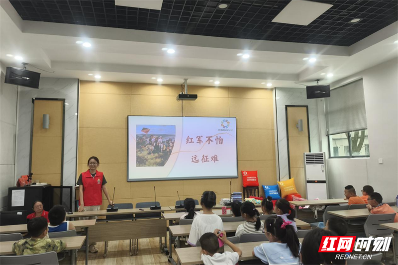 8月4日的活动,像一块精心调配的调色盘,晕染出红色基因与安全守护的丰富色彩。上午8点,思政引领课率先“开讲”。志愿者用一张张泛黄的老照片、一段段珍贵的影像资料,带孩子们“穿越”到长征年代:血战湘江时红军将士的浴血奋战,飞夺泸定桥时勇士们的奋不顾身,过草地时战友间的相互搀扶……在关于长征精神的互动提问中,稚嫩的话语里透着被触动的坚定。