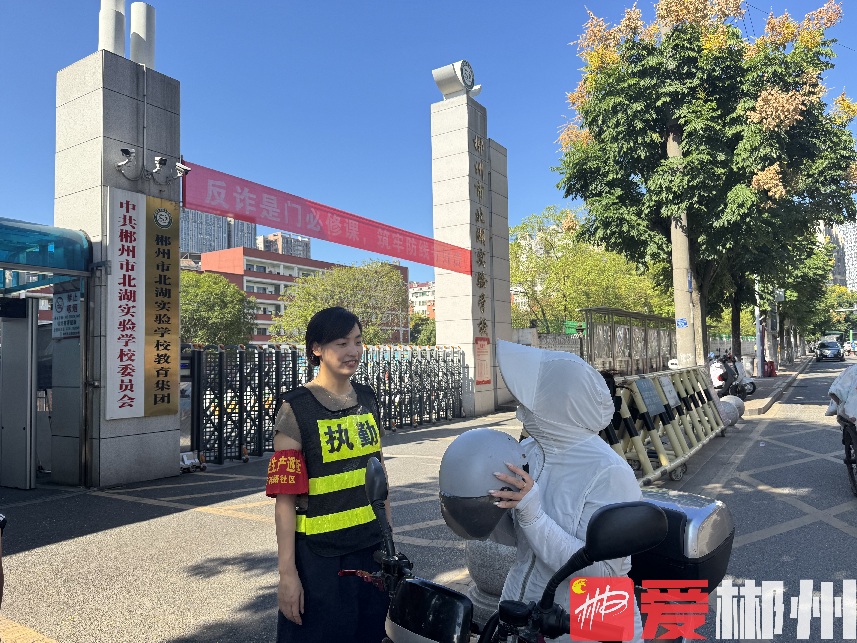 文星社区文明交通劝导员到辖区校园周边开展交通劝导工作。(邓春艳 摄)