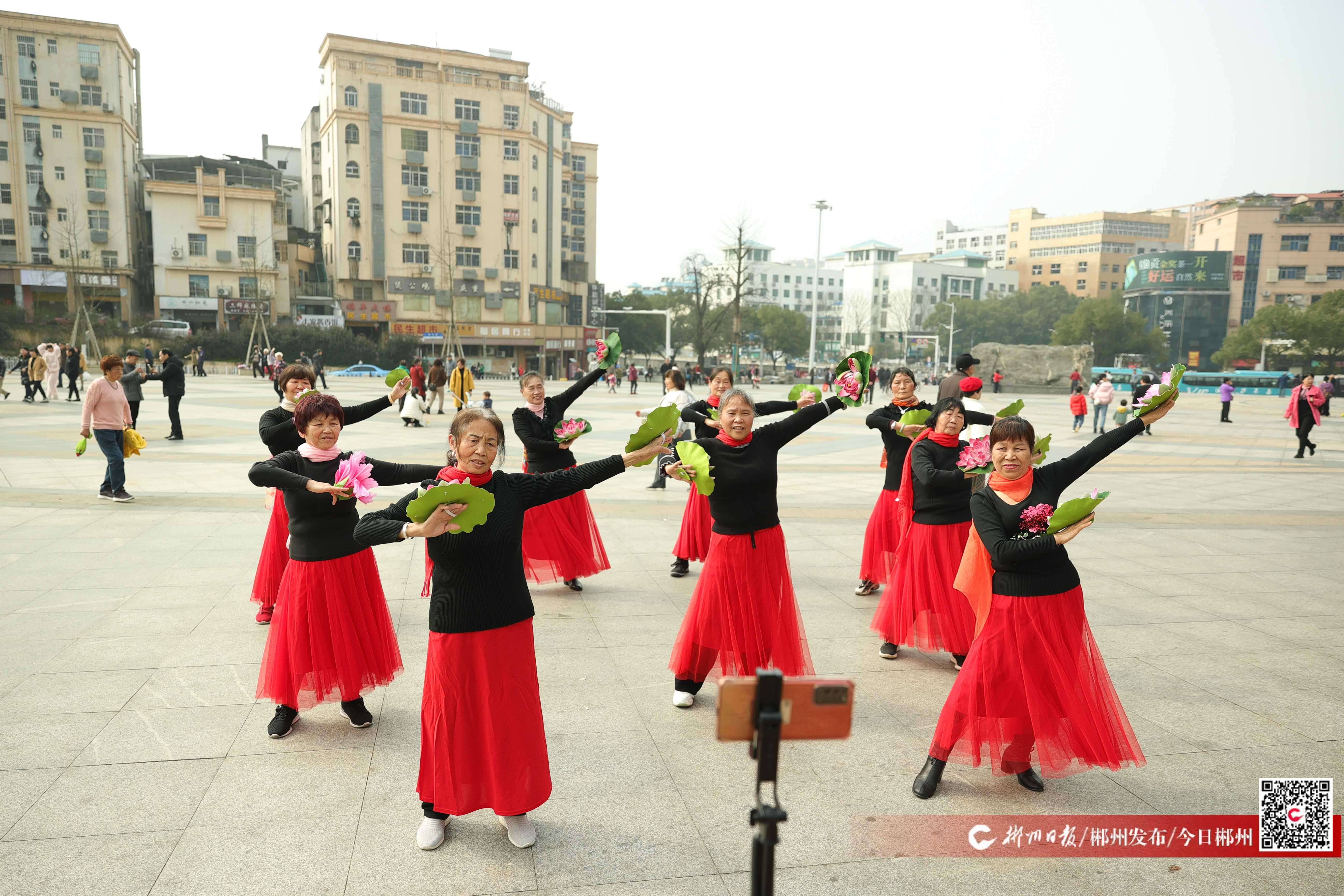 3月8日,市民在郴州福地广场排练节目,庆祝“三八”妇女节。当天,郴州市各单位和广大市民群众纷纷开展丰富多彩的欢庆活动,欢度“三八”妇女节,展现巾帼风采。(来源:今日郴州 通讯员 欧阳常海)
