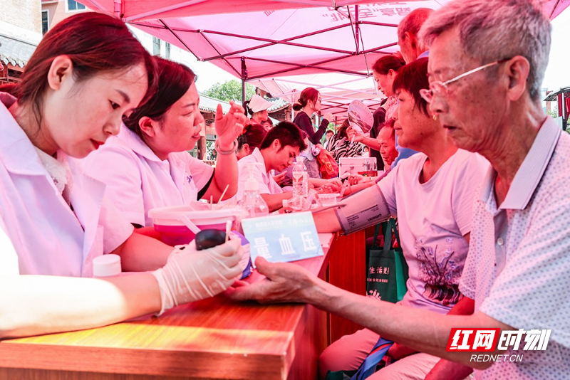 卫健部门免费为村民测血糖、量血压等,并赠送药品。