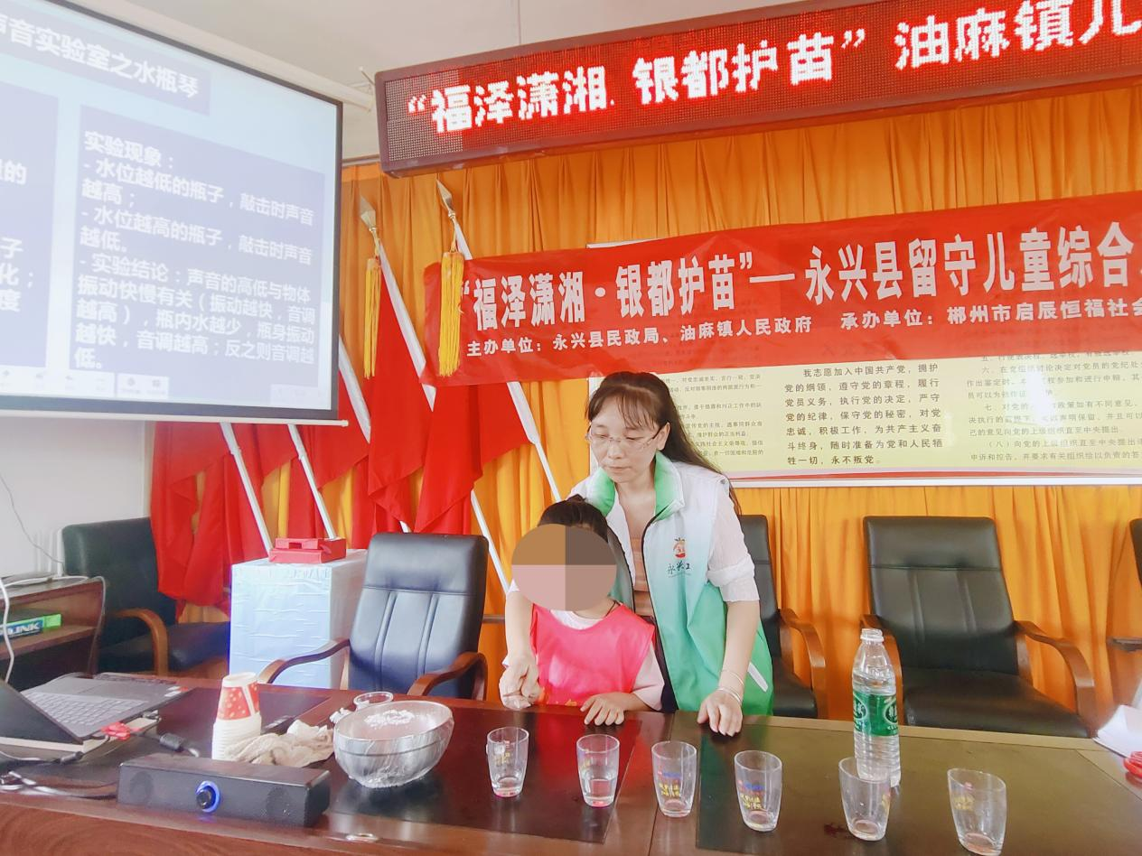 湖南日报·新湖南客户端7月24日讯(通讯员 曹康 王赛艳 李彦霖)7月23日,永兴县油麻镇开展以“探索声音魔法,开启科学之旅”为主题的“福泽潇湘,银都护苗”关爱留守儿童活动,旨在通过一系列趣味声音实验和科普活动,丰富当地留守儿童暑期生活,激发孩子们对科学知识的探索兴趣,给予他们关爱与陪伴。