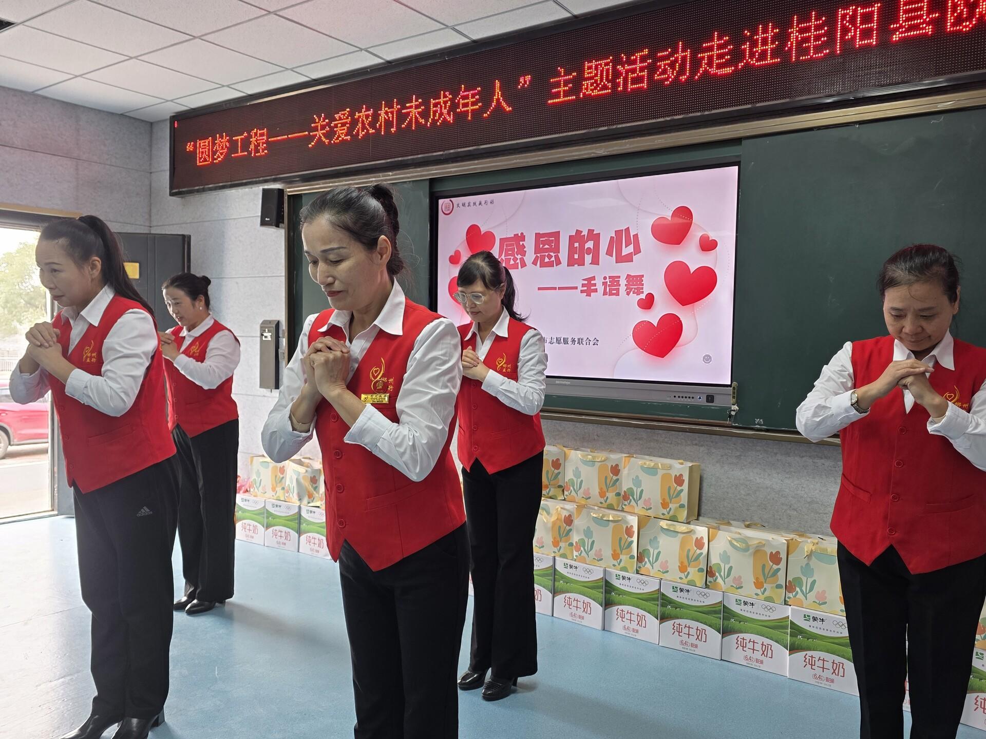 本次活动由郴州市文明办、中共郴州市委社会工作部主办,郴州市志愿服务联合会、桂阳县文明办、桂阳县古郡志愿者协会承办。活动中,志愿者带来了手语舞《感恩的心》,郴州好人尹春梅为留守儿童讲授了《传统礼仪小课堂》,还开展了防电诈、消防安全教育知识讲座、"垃圾分类"情景剧等活动。欧阳海镇中心学校的孩子们合唱《我和我的祖国》,抒发爱国情怀,赢得现场阵阵掌声。活动最后,志愿者还为留守儿童发放慰问物品,将浓浓的关怀送到孩子们手中。(来源:桂阳县融媒体中心 记者 李玮嘉)