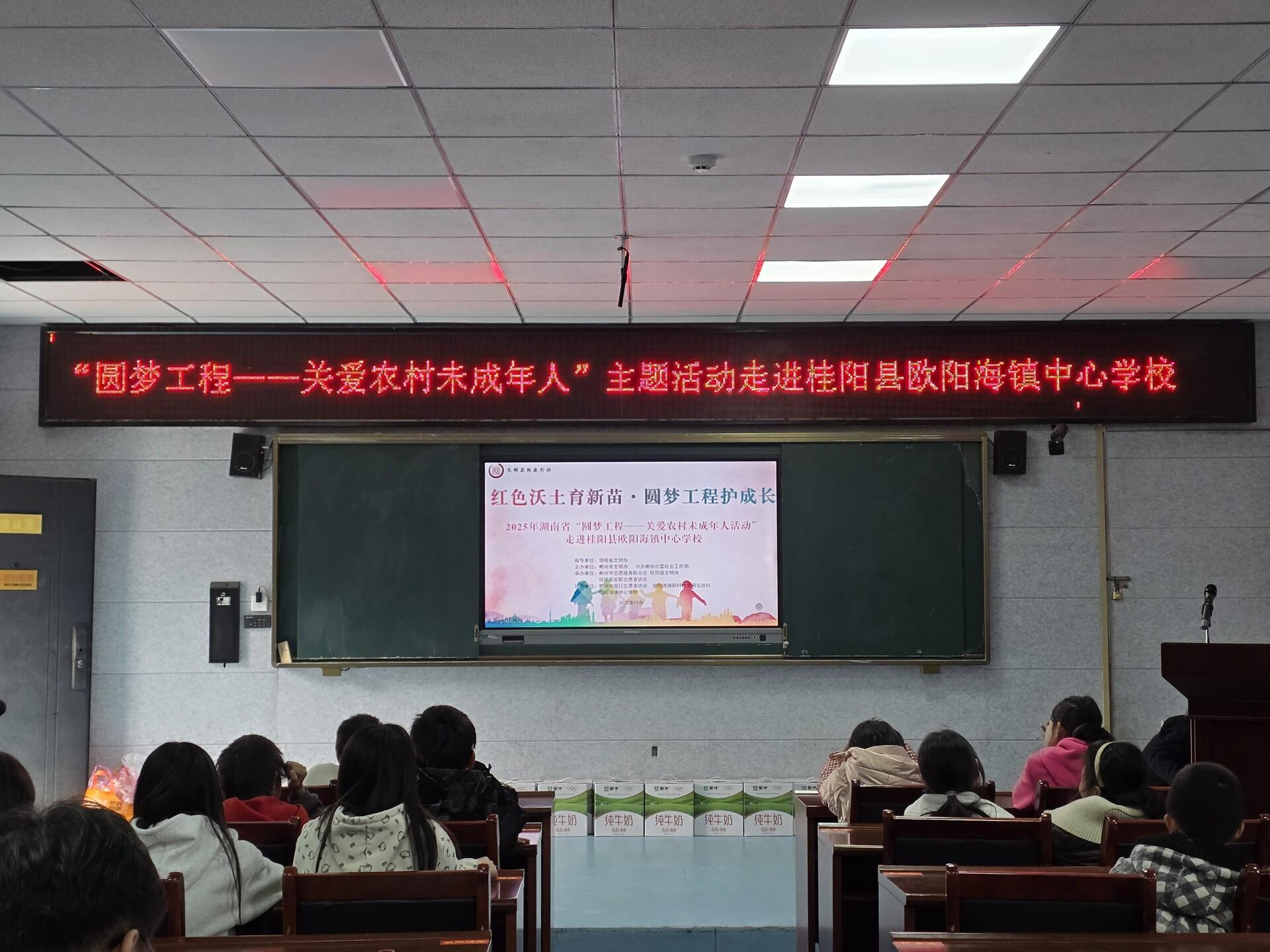 11月13日,2025年湖南省“圆梦工程——关爱农村未成年人活动”走进欧阳海镇中心学校,为30名留守儿童送去温暖与关怀。