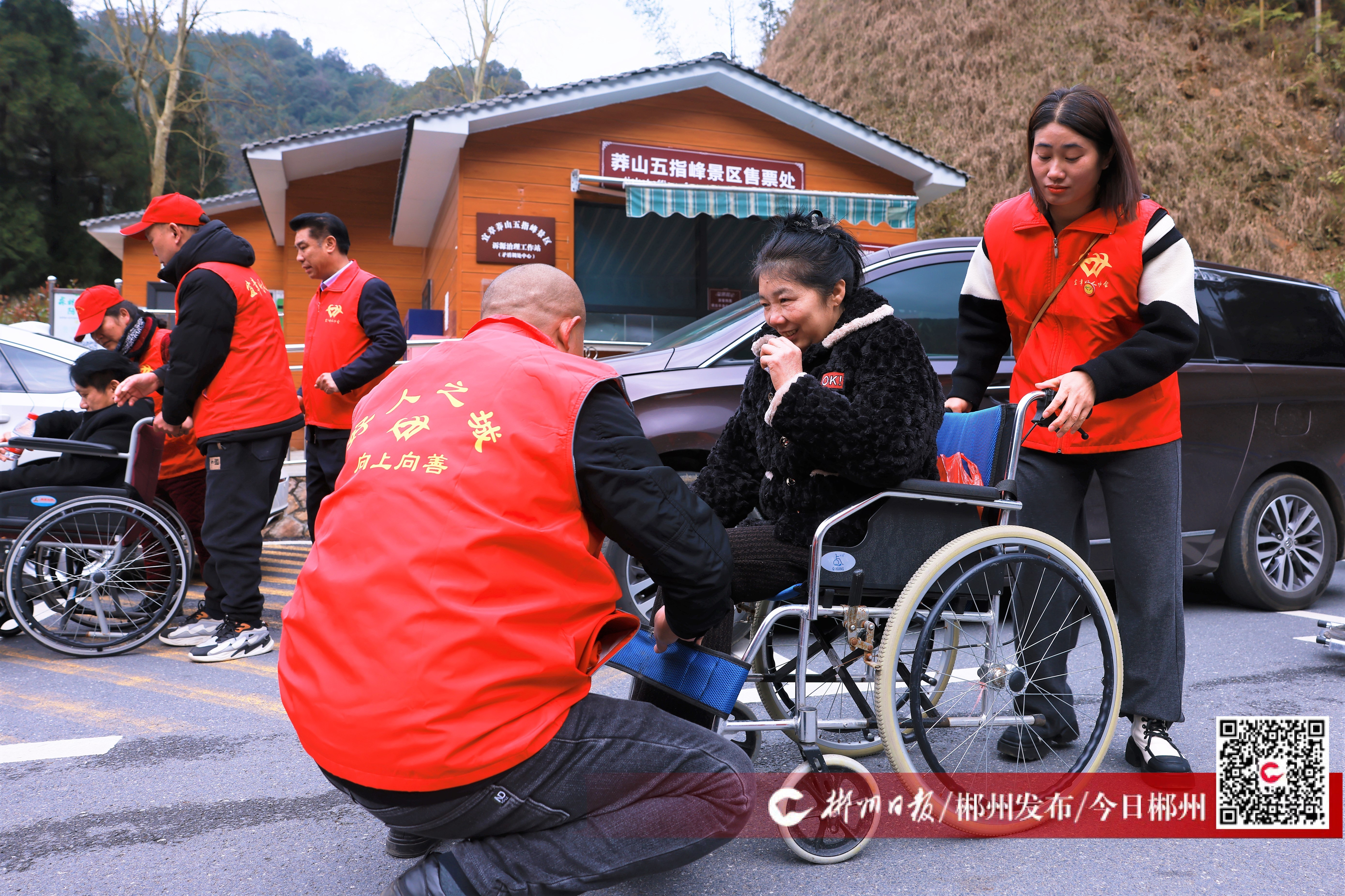 3月3日,莽山五指峰景区,数名残障人士在郴州市宜章县好人协会志愿者的热情帮助下,实现了游览莽山风光的梦想。宜章县好人协会志愿者用关怀和耐心给予了残障人士无微不至的照顾,让他们能够尽情享受大自然的美丽。这次活动不仅让残障人士感受到了社会的关爱,也展示了志愿者的奉献精神。(来源:今日郴州 通讯员 曹慧玲)