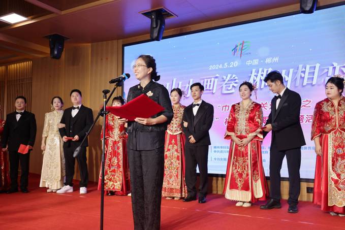在湖南省妇联党组书记、主席黄芳,郴州市副市长杨平等领导的见证下,在现场亲友、巾帼志愿者的贺喜中,以及在近300名单身青年男女的祝福里,新人们诵读誓词,共同完成了集体婚礼仪式。